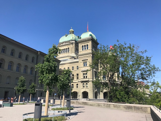 A short ride with the cable car brings you back up to the Swiss Government Building next to the Bellevue Palace Hotel.
